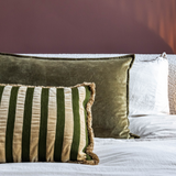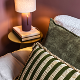 Sierkussen Olive Oasis (strepen met franjes) – 40 x 60 cm