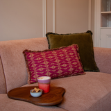 De Soof set combineert het effen sierkussen Olive Oasis (45 x 45 cm) met franjes en het rechthoekige kussen Blushed Berry (30 x 50 cm). Het diepe olijfgroen vormt een rustige basis, terwijl de warme berrykleur zorgt voor contrast en een krachtig accent. Samen creëren ze een rijke, gebalanceerde uitstraling.