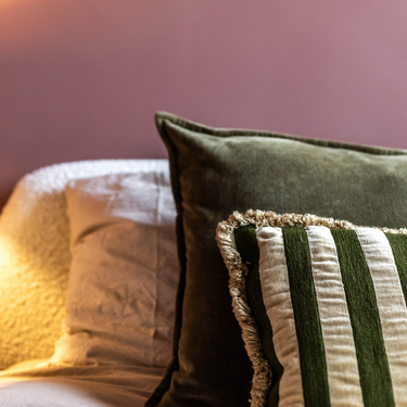 Dit kussen is een combinatie van stijl en comfort. De effen groene kleur is prachtig te combineren met neutrale tinten of als contrast bij prints. De hoogwaardige stof voelt heerlijk zacht aan en heeft een verfijnde textuur die zorgt voor een luxueuze uitstraling. Het stevige binnenkussen van polyester blijft mooi in vorm, zelfs na intensief gebruik.
