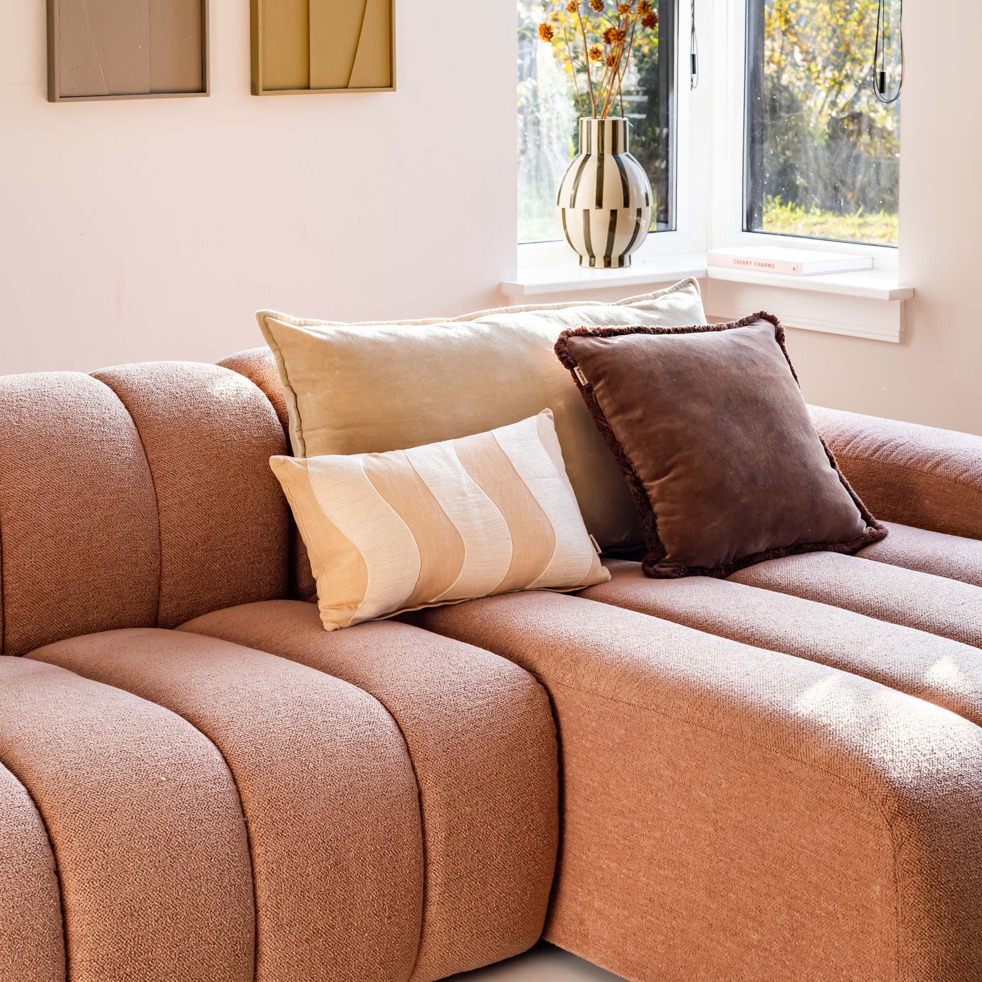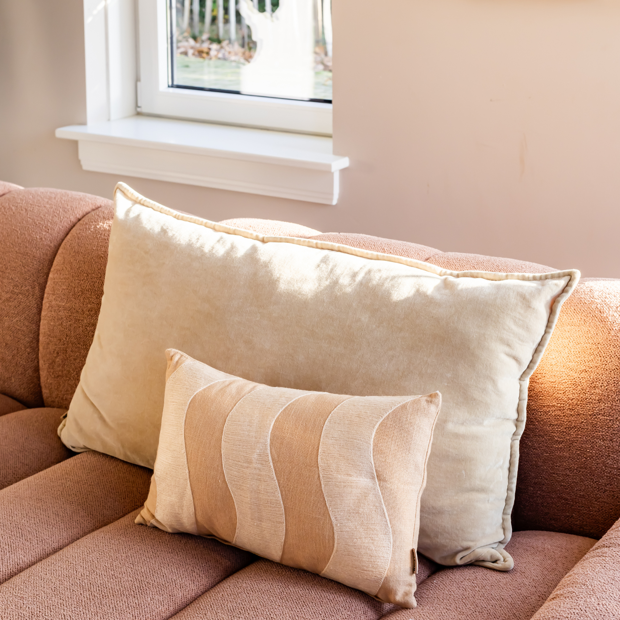Het formaat van 30 x 50 cm maakt het kussen ideaal om te combineren met grotere effen varianten of juist met kussens met een rijke textuur, zoals velvet of franjes. Zo creëer je moeiteloos diepte en harmonie in je zithoek of slaapkamer.