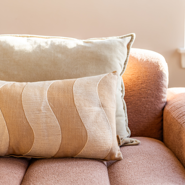 Met zijn golvenprint voegt Bold Beige een subtiel grafisch element toe aan je interieur, zonder druk te ogen. De zachte kleurnuances sluiten prachtig aan bij zowel lichte als donkere meubels. Dankzij het handgemaakte karakter straalt dit kussen vakmanschap en authenticiteit uit.