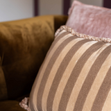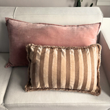 Dekokissen in kräftigem Beige (Streifen mit Fransen) – 40 x 60 cm