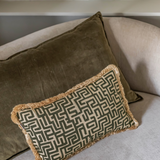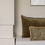 Olive Oasis XL (50 x 90 cm): een royaal kussen in een diepe olijfgroene tint. Elegant, tijdloos en ideaal als basis.