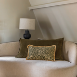 De sierkussenset June ademt rust, verfijning en natuurlijke elegantie. Met een combinatie van diepe olijfgroene tinten en een speelse beige print brengt deze set balans en harmonie in iedere ruimte.