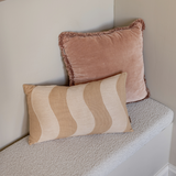 Eén kussen in Bold Beige x White met verticale golvenprint (30 x 50 cm)