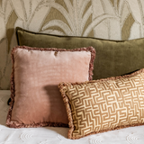 Möchten Sie Ihrem Interieur einen kraftvollen und dennoch sanften Look verleihen? Das Dekokissenset Fay vereint das Beste aus beiden Welten. Tiefes Olivgrün, Puderrosa und Beige ergeben eine überraschend harmonische Kombination, die Wärme, Kontrast und Eleganz ausstrahlt. Perfekt für ein stilvolles Ambiente mit einem verspielten Touch.