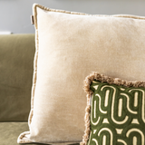 De zachte stof voelt aangenaam aan en de neutrale tint zorgt ervoor dat dit kussen makkelijk mee te stylen is met elk seizoen en elke woonstijl.