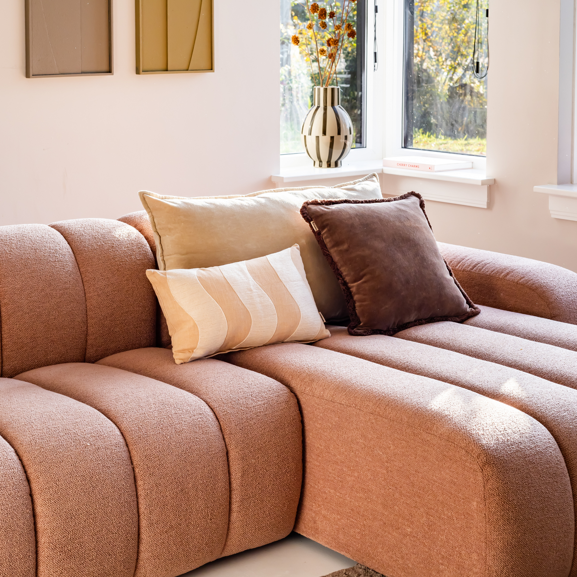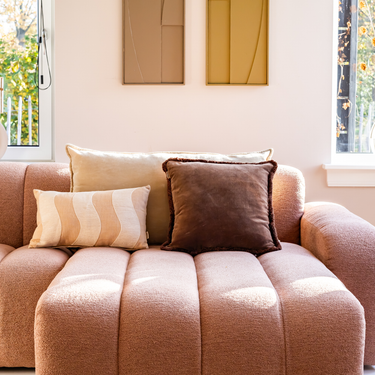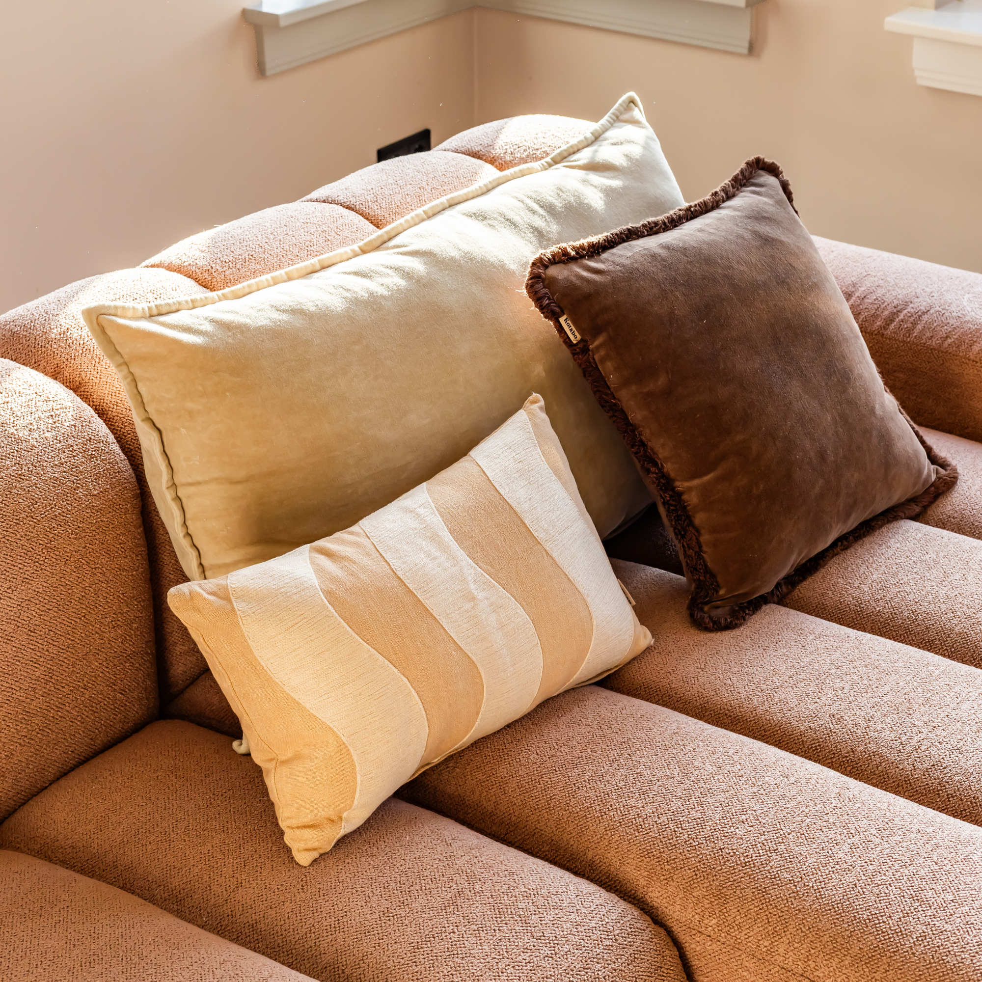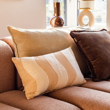 Der Baumwollstoff fühlt sich fest und angenehm an und trägt zu einem ruhigen, harmonischen Gesamtbild bei. Dank seiner kompakten Größe lässt sich dieses Dekokissen ideal mit XL-Kissen, Drucken oder anderen Texturen aus der Kotabo-Kollektion kombinieren.
