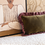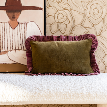 Suchen Sie nach einem raffinierten Farbtupfer mit luxuriösem Finish? Olive Oasis x Plum Powder verleiht Ihrem Interieur Tiefe und Kontrast, egal ob allein getragen oder als Teil eines stilvollen Kissen-Sets.