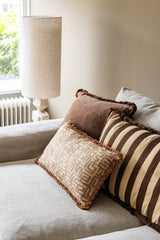 Bestellen Sie das Kotabo Dekokissen mit Streifen und Fransen – 40 x 60 cm – Schokoladenbraun