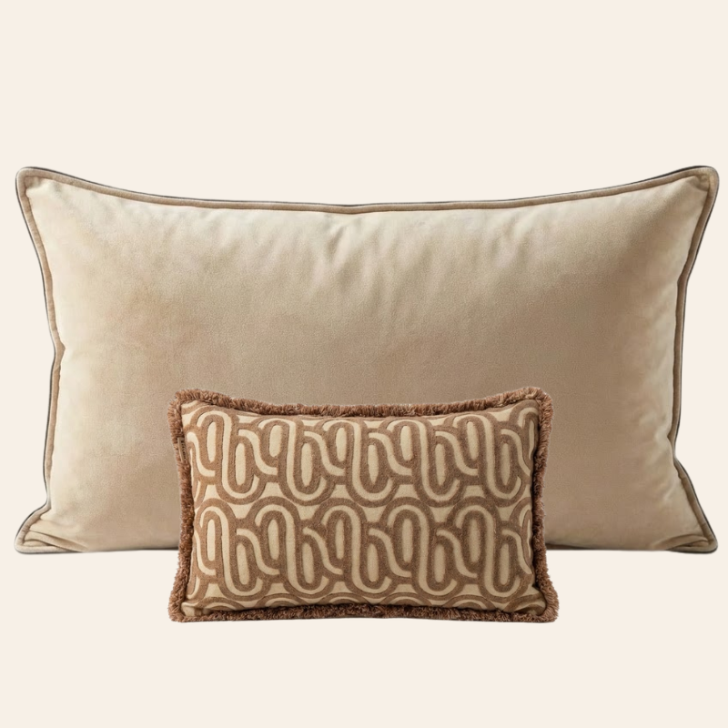 Das Dekokissen-Set Cato besticht durch eine dezente und zugleich ausdrucksstarke Kombination aus beruhigenden Naturfarben und verspielten Details. Zusammen bilden die Kissen ein stilvolles Duo, das ein zeitlos elegantes Interieur perfekt ergänzt.