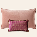 Zusammen bilden sie ein harmonisches Ganzes: Das XL-Kissen strahlt Ruhe und Eleganz aus, während der Druck und die Fransen von Blushed Berry für eine überraschende und lebhafte Note sorgen.