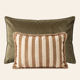 Kräftiges Beige (40 x 60 cm): Ein verspieltes Kissen mit Streifen und Fransen. Das handgefertigte Design verleiht ihm Struktur und optische Reize.