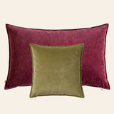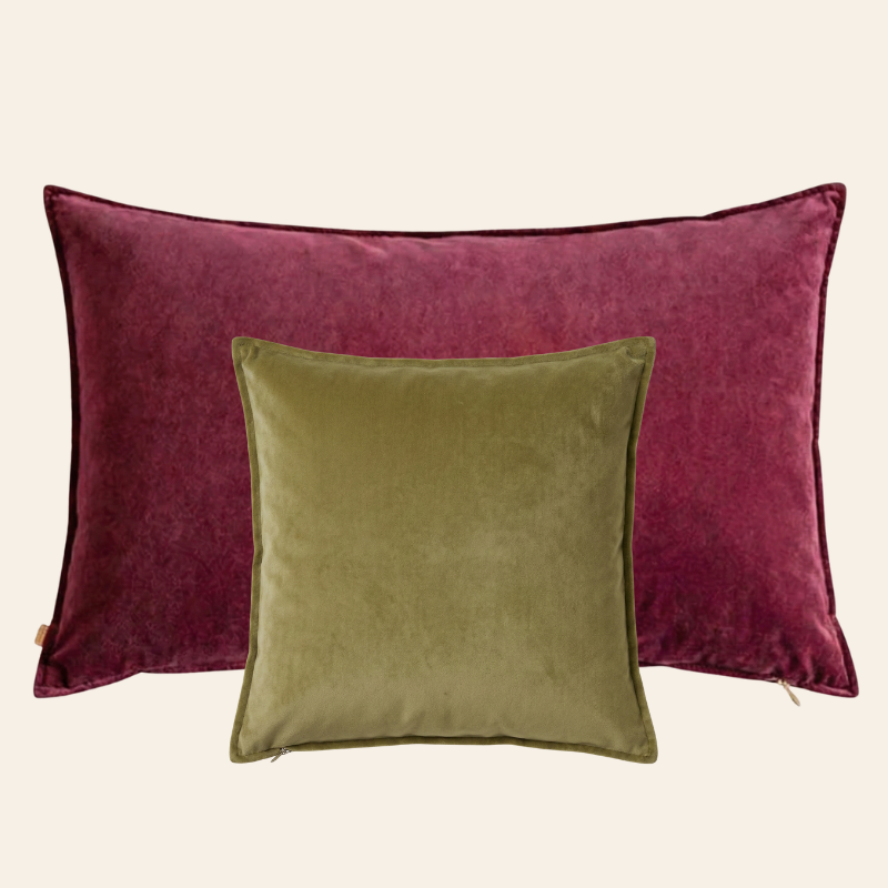 Das Louise-Set kombiniert das XL-Kissen „Magical Mauve“ (50 x 90 cm) mit dem 45 x 45 cm großen Kissen „Perfect Pistachio“. Der tiefe Mauveton bildet eine elegante Basis, während das frische Pistaziengrün für einen raffinierten Akzent sorgt. Zusammen ergeben sie eine stilvolle Kombination, die Ihrem Sofa, Sessel oder Bett im Handumdrehen ein besonderes Ambiente verleiht.
