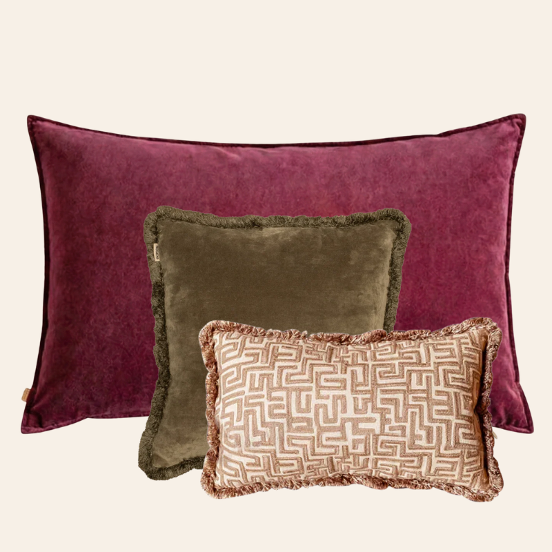 Suchen Sie eine weiche und vielseitige Kombination? Das Dekokissenset Sofia vereint warmes Mauve, natürliches Olivgrün und zeitloses Beige. Das Ergebnis: ein eleganter Mix, der Ihrem Interieur Ruhe und Charakter verleiht. Langweilig ist dieses Set aber sicher nicht; die satten und zeitlosen Farben harmonieren wunderbar.