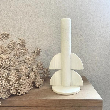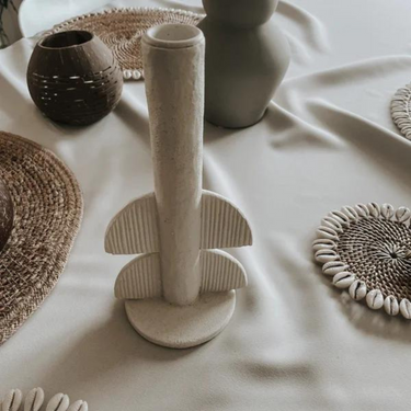 Mit seinem raffinierten und schlichten Design wertet dieser Kerzenhalter das Erscheinungsbild jedes Raumes auf. Die sanfte elfenbeinweiße Farbe und die organische Form machen es zu einem vielseitigen Stück, das sich harmonisch mit anderen Dekorationsgegenständen verbindet. Das langlebige Polyresin-Material sorgt für einen luxuriösen Look, der lange hält.