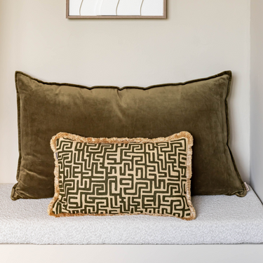 Olive Oasis XL (50 x 90 cm): een royaal kussen in een diepe olijfgroene tint. Elegant, tijdloos en ideaal als basis.