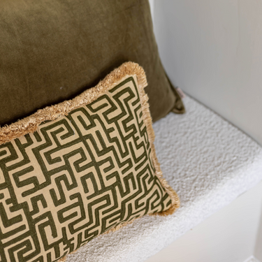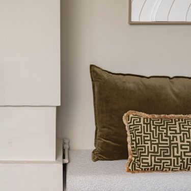 De sierkussenset June ademt rust, verfijning en natuurlijke elegantie. Met een combinatie van diepe olijfgroene tinten en een speelse beige print brengt deze set balans en harmonie in iedere ruimte.