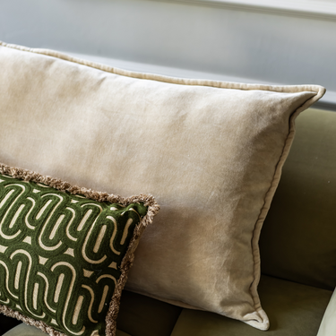 De zachte stof voelt aangenaam aan en de neutrale tint zorgt ervoor dat dit kussen makkelijk mee te stylen is met elk seizoen en elke woonstijl.