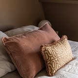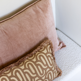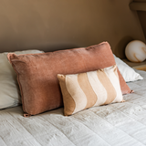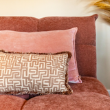 Pretty in Pink is one of those cushions that immediately stands out without being overpowering. That soft pink shade works perfectly with light colors for a fresh look, but also looks stunning with warm earth tones. Its 50 x 90 cm size makes it extra comfortable to lean against and creates a playful contrast with smaller cushions.
