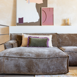 La combinazione di un cuscino XL e uno rettangolare garantisce un insieme stratificato ed equilibrato. I tessuti morbidi e di alta qualità sono confortevoli al tatto e mantengono la forma anche con l’uso quotidiano.