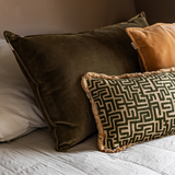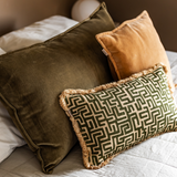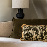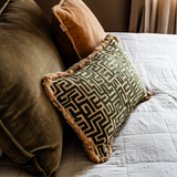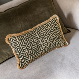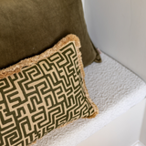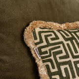 PRE-ORDER Kotabo sierkussen met Griekse print groen met franjes – 30 x 50 cm – Olive Oasis