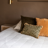 Olive Oasis geeft direct warmte en sfeer aan je bank, fauteuil of bed. De subtiele print in olijfgroen voegt diepte toe, terwijl het neutrale beige met gele ondertoon zorgt voor een rustige basis die in elk interieur past. Dankzij de franjes krijgt het kussen een speelse, luxe uitstraling.