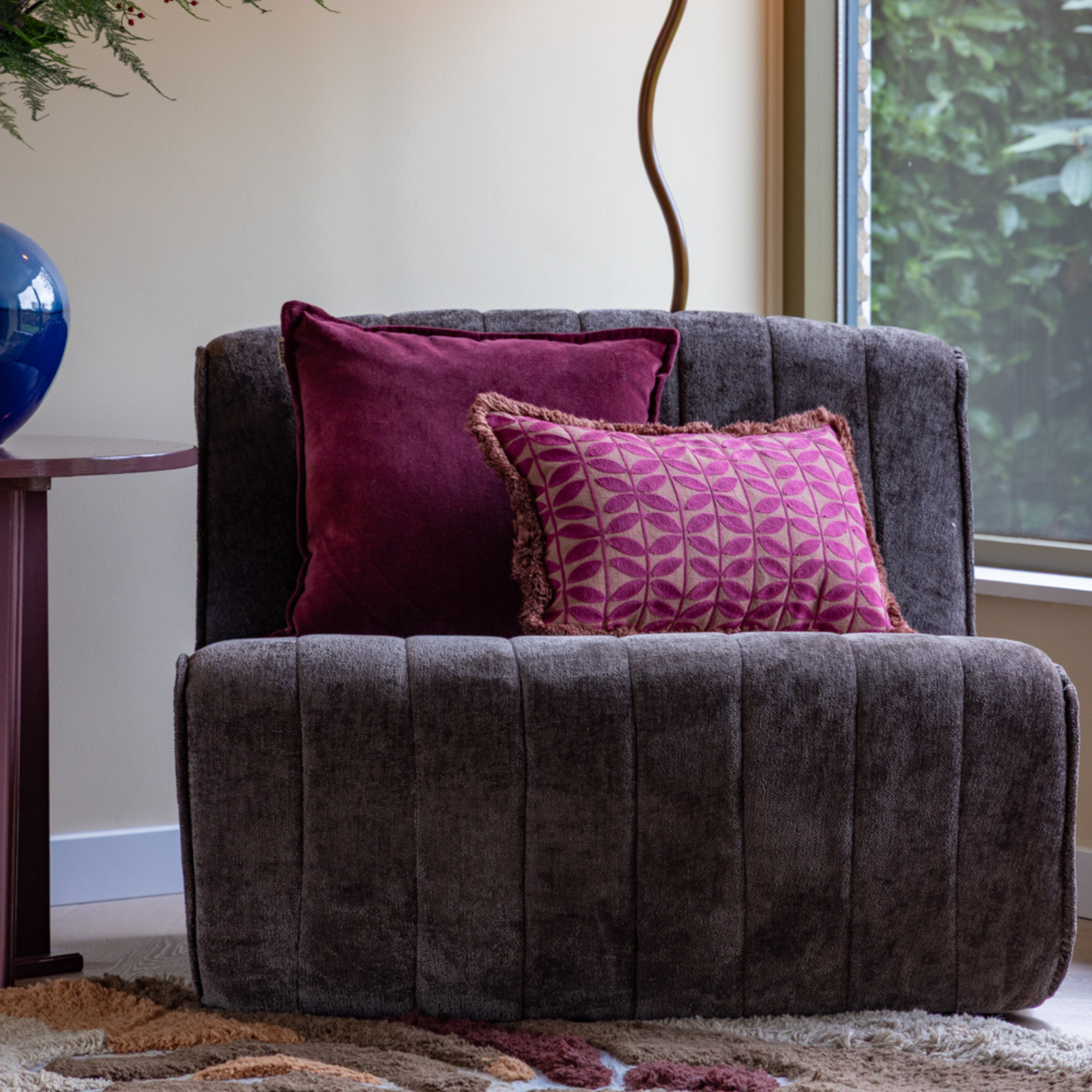 Leg de kussens samen op een lichte of neutrale bank voor een zacht, elegant contrast. Combineer met accessoires in beige, taupe of warm bruin om de mauvetint extra tot zijn recht te laten komen. Wil je een luxere sfeer creëren? Voeg dan accenten toe in goud of champagne.
