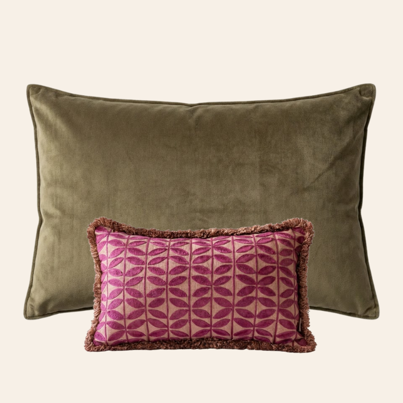 Kotabo sierkussenset Elise – Set van 2 kussens – Olive Oasis & Blushed Berry